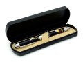 Oprawka wykonana jest z metalu częściowo ozdobionego zaawansowanymi technikami drukarskimi, a częściowo ręcznie (złoty i srebrny pył uzupełniany jest na każdej oprawce indywidualnie). Zawiera dwa rodzaje tuszu - czarny i czerwony oraz ołówek automatyczny wraz z gumką do ścierania.
